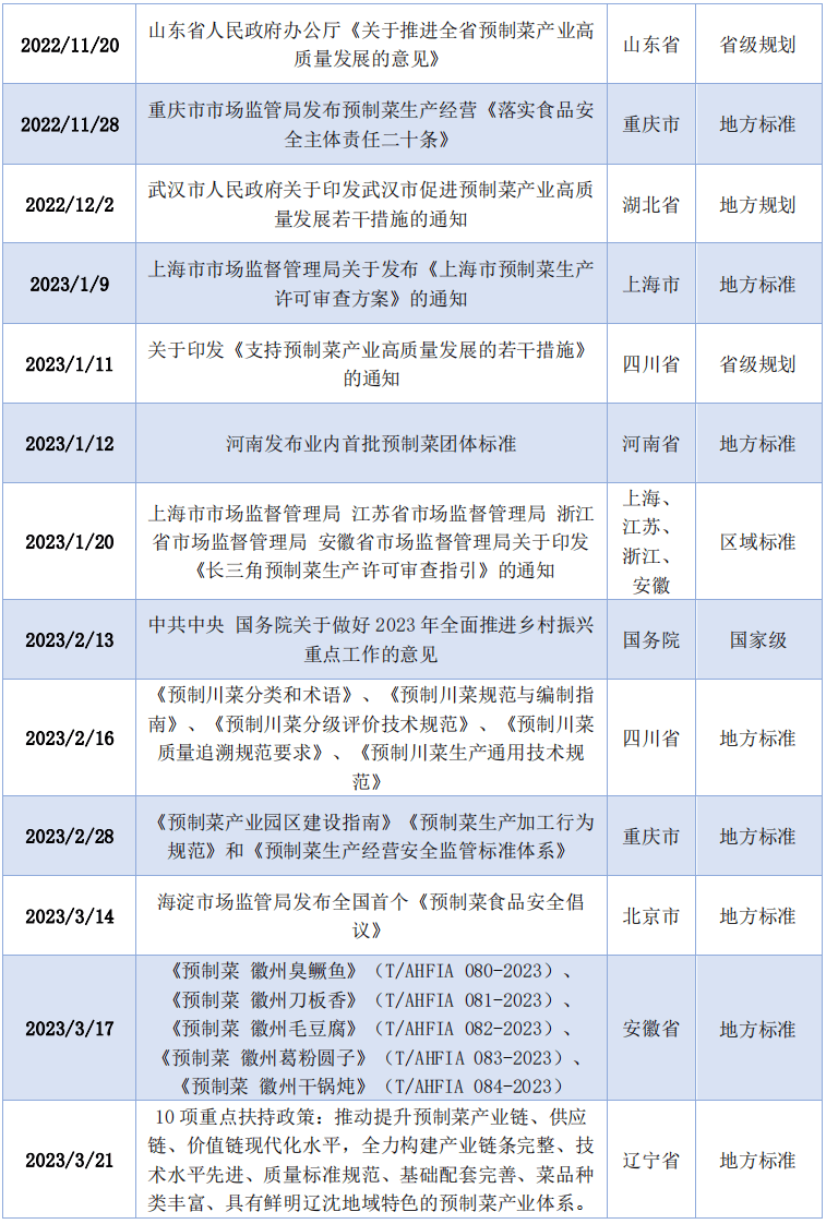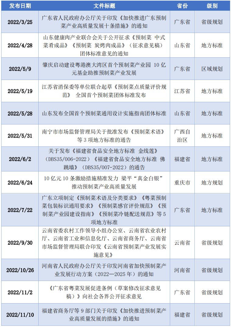 此外,财产园区扶植方面,全面梳理行业成长情况,消费者对预制菜质量的高要求,这是预制菜初次被写入地方一号文件。
