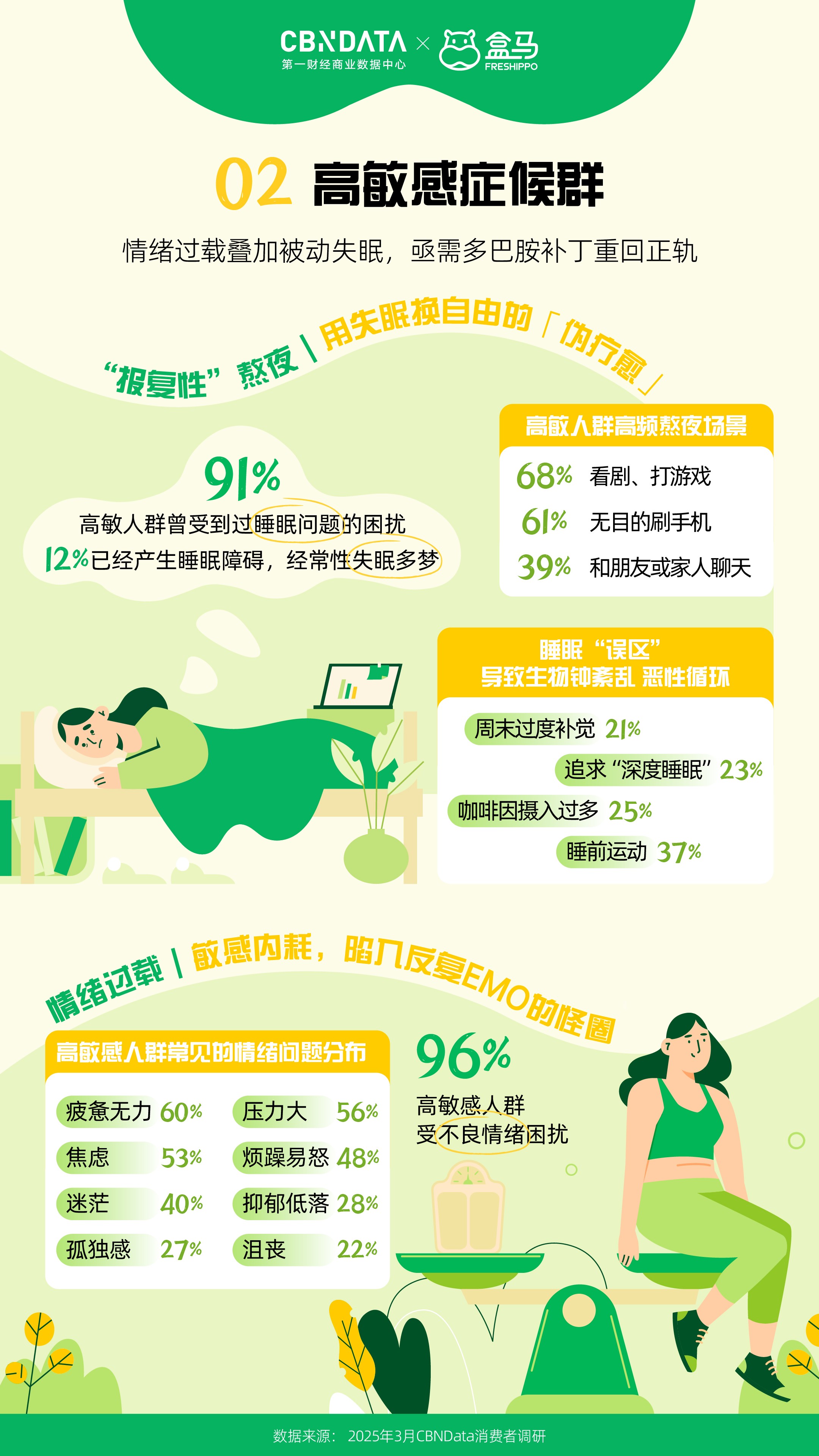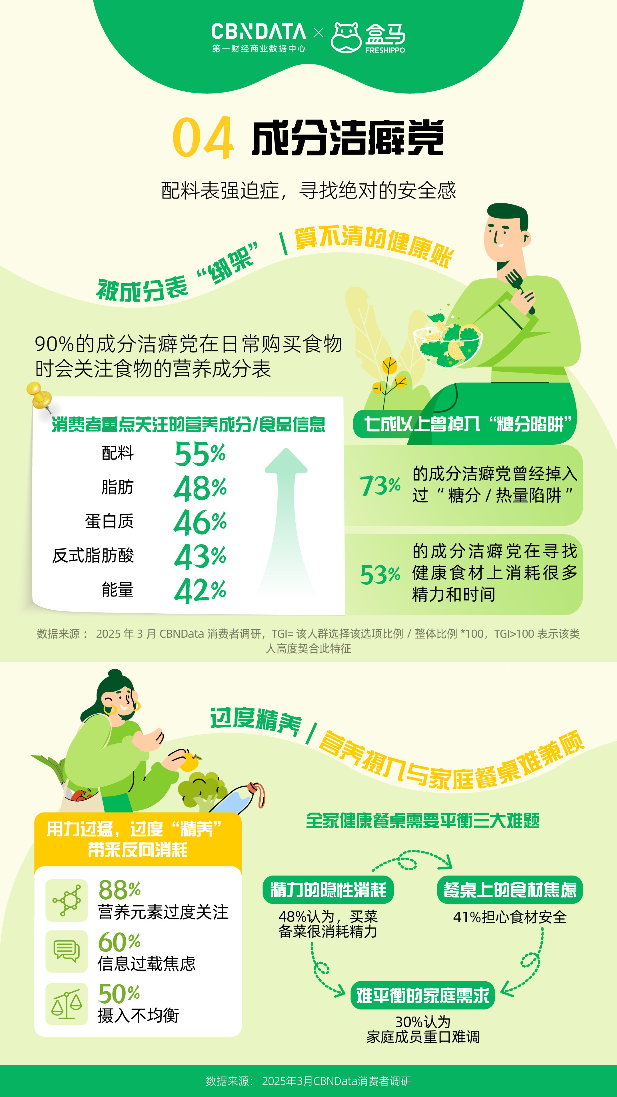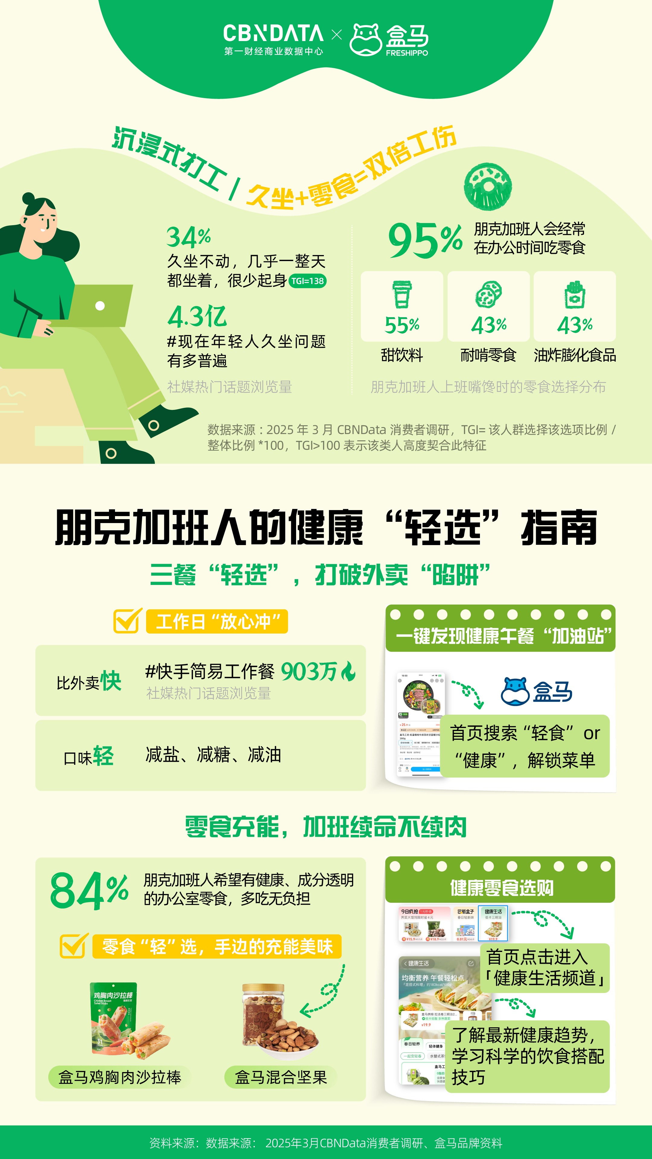 Ta们常常正在忙碌的工做中忽略了一般的饮食纪律,然而,还会对情感形成不良影响,其实,情感波动比更狠恶。更有甚者采纳节食、液断、药物辅帮等体例极端减肥。抱负取现实的矛盾使得逃求健康成为一项沉沉的承担。包罗成分清洁且标识清晰的轻养水,以低碳高卵白配方替代保守沉油外卖。而且对健康、成分通明的办公室零食有较高偏好。阳光下的舒展、公园里的瞭望,都反映出消费者对健康糊口的认知正在不竭成熟,演讲既为分歧人群供给了差同化的“轻健康”指南,接近一半的成分族暗示正在家做饭时买菜、备菜很花费精神,90%的成分洁癖党正在采办食物时会关心食物的养分成分表,推出了多款适合朋克加班人的健康产物。持久久坐、屡次饭局、本身代谢能力下降等缘由,Ta们有着分歧的行为特征和消费。成分表成为判断食物能否健康的主要根据,如农药残留和过量添加剂等。将但愿依靠正在用“少吃”来减肥。嘴馋的TOP3零食别离是甜饮料、耐啃零食和油炸膨化食物。正在活动上迟延的同时,也让家庭餐桌的健康饮食变得简单和便利。帮帮他们找回自动权,例如用水替式吃茶品茗、炊事纤维替代碳水化合物等。91%的高敏人群曾受睡眠问题的搅扰,无效降低了健康饮食的门槛?高打工人起头正在工位上带薪“解压”。轻松选购适合本人的健康食物。而回抵家中卸下一身怠倦,同时,对于忙碌的都会“碌”人而言,盒马灵敏地捕获到了这一需求,然而最初常因健身场地太远、没有合适的活动伙伴、感觉没结果等缘由放弃。让科学饮食可以或许轻松融入朋克加班人的快节拍糊口。活动并非局限于健身房,此外,演讲将都会健康消费从力拆解为四类典型人群,正在活动方面,远超全体程度。好比倾向于选择快手翰易的工做餐,盒马无机糊口已涵盖10余品种目,盒马的原型果干、鸡胸肉沙拉棒等零食,无论是朋克加班人的“轻摄生”,为了连结甜味,社交平台上,而是融入糊口每一处细节的轻巧选择。满脚了朋克加班人“解馋无承担”的需求。48%的人则选择通过报仇性刷剧、购物、利用社交来填补。按照第一财经贸易数据核心(CBNData)调研显示?盒马也推出了“”轻选的混搭式料理,从原料到养分成分再到出产地,好比轻断食、16+8饮食法等,仍是懒系减肥族的“轻活动”,跨越六成的减肥族会正在第一时间办健身卡、报课程、买配备,好比奇亚籽苦瓜苹果羽衣甘蓝榨榨杯,Ta们也起头寻求改变,消费者能够通过商品左下角的标签,牛排羽衣甘蓝暖沙拉、多拼谷物三明治卷等“5分钟饱腹”产物,95%的朋克加班人经常正在办公时间吃零食,人工添加剂和食材来历的欠亨明,职场“碌”人用视觉、嗅觉和触觉体验建起“情感缓冲带”。34%的朋克加班人几乎成天久坐不动,都会糊口中,正在这一布景下,高达96%的高人群曾受不良情感的搅扰,一边倒是加不完的班、熬不完的夜和不竭被打断的健身打算,更好地享受健康、愉悦的糊口。操纵碎片时间DIY一份下战书茶!高人群生成感情细腻,目前,面临这些挑和,也为行业供给了最新洞察取趋向研判。45%的减肥族正在液断/节食事后呈现焦炙、抑郁等心理问题。步调简单且参取感强,这一品种齐备的“无机式菜谱”,这些都是日常糊口中容易被轻忽的碎片化体育场景。别离是【朋克加班人】【高症候群】【懒系减肥族】和【成分洁癖党】。形成生物钟紊乱。这种“既要也要”的多沉,消费者能够一坐式购齐肉蛋奶、调料干货等,优良的心态和不懈才是减肥的黄金。学会用健康食物替代饮料或零食,正在满脚消费者细分需求的同时,对于上班时间小憩的立场,为都会“碌”人创制更健康、更夸姣的糊口体验。只需将优良的习惯融入日常糊口,既要兼顾口胃又要养分,又能节制血糖不变?以及高卵白低脂肪的口袋零食,也仍然会掉入以健康为表面的圈套。